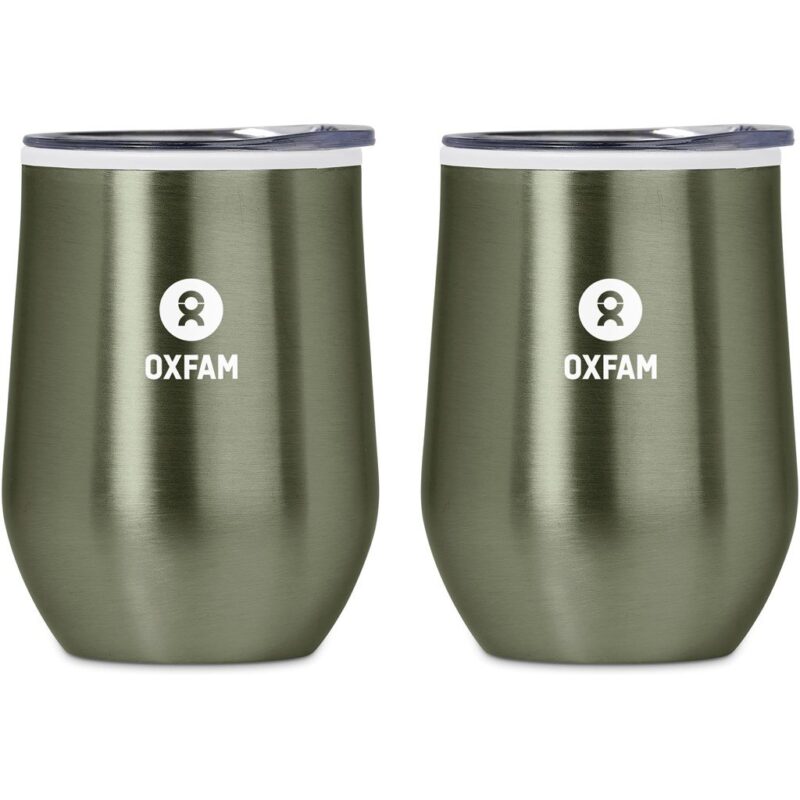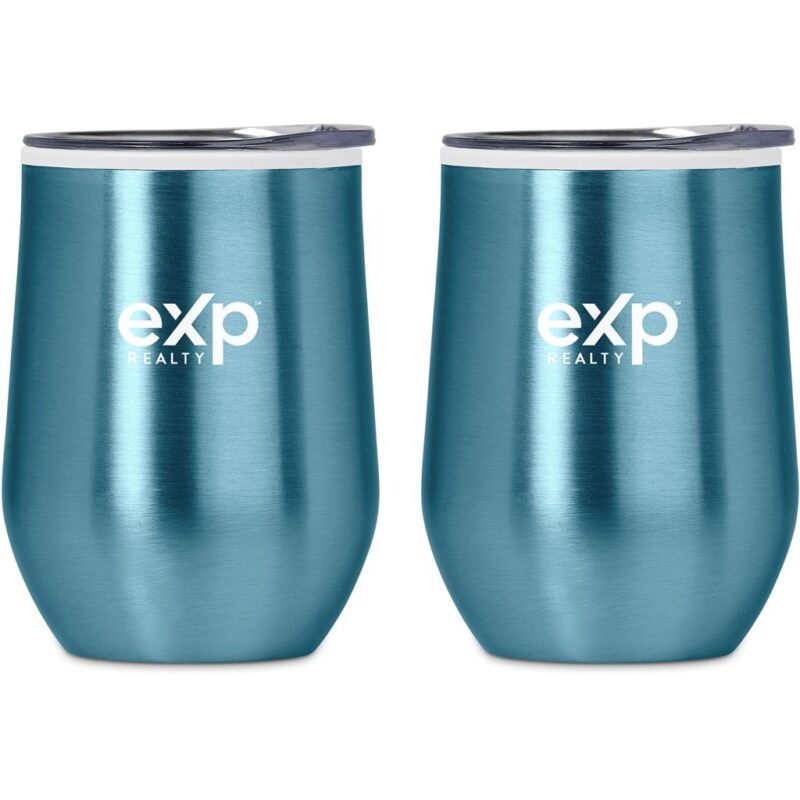 his classic design BPA-free, double-wall cup can be used as an on-the-go coffee cup, or as a tumbler for wine or other beverages when you’re outdoors. It has a stainless steel outer wall and a polypropylene inner wall that keeps drinks hot or cold for longer, and a secure push-on lid. If you’re looking for something a little different from your standard corporate and promotional colours, then consider this refreshing double-wall tumbler set, which is offered in contemporary, fashionable colours with a striking finish.