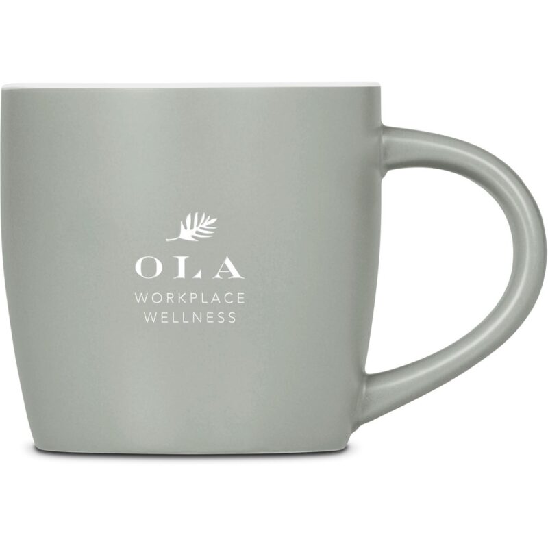 The upmarket matte finish on this 280ml coffee mug gives it a warm and cosy feeling. Laser engraving removes the colour surface to reveal the ceramic below. This is a subtle, elegant branding method and provides longevity for the logo or message being branded, as it will never come off or fade away.